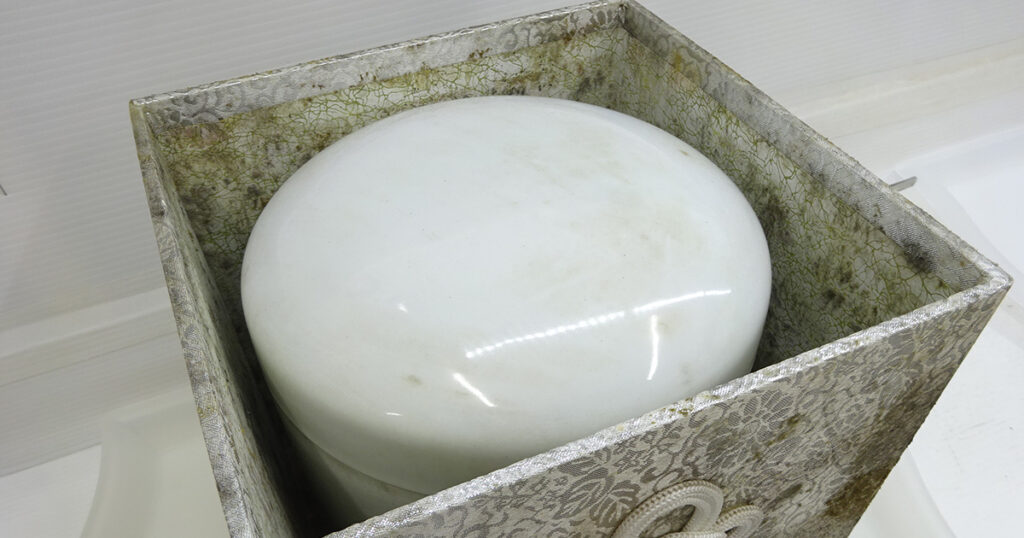 カビは市販で買える除菌用アルコールである程度死滅しますが、深く入り込んだ根っこまではやっつけられませんので骨箱や風呂敷などは新品に交換してしまった方が安心です。