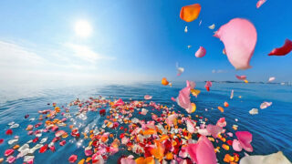 宮城県仙台湾で実施された海洋散骨の様子