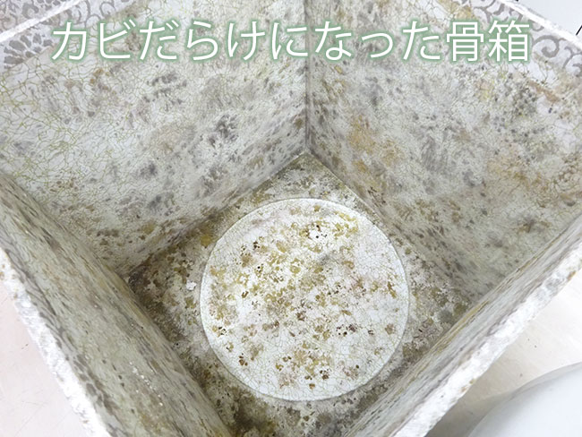 遺骨を入れた骨箱の横にお花や果物などの供物を置いておくと、風呂敷や木箱が湿気を吸い込んでカビや腐食の原因になりますので置かないようにしましょう。どうしても置きたい場合は骨箱から遠ざけて置くようにします。